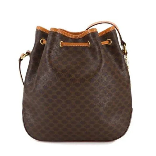CELINE Macadam Shoulder Bag Leather Brown Gold Hardware