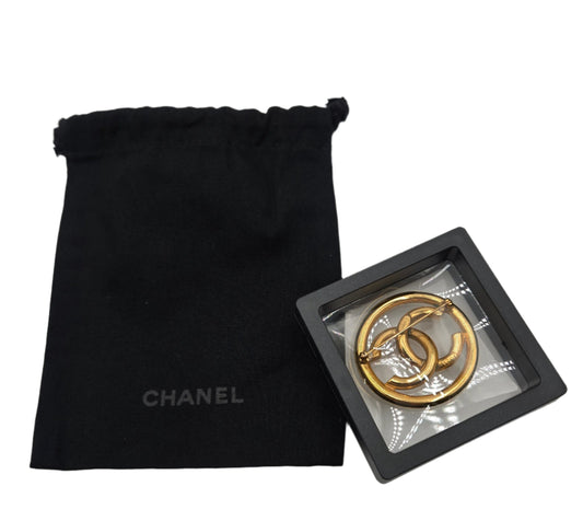 Chanel Gold Plated Coco Mark Circle Brooch Golden