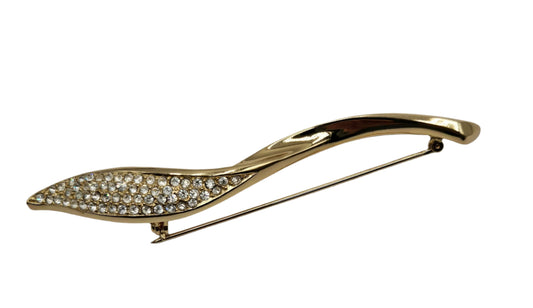 Christian Dior Dior Rotating Pin Type Leaf Motif Pave Bijou Christian Gold Brooch