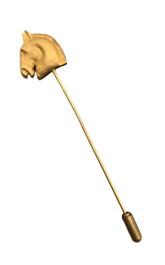 HERMES Cheval Gold Plated Horse Head Pin / Brooch - VIINTAGE