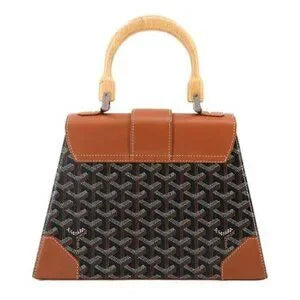 Goyard Saigon PM 2-way hand/shoulder Bag - PVC, leather, wood, black/brown Herringbone