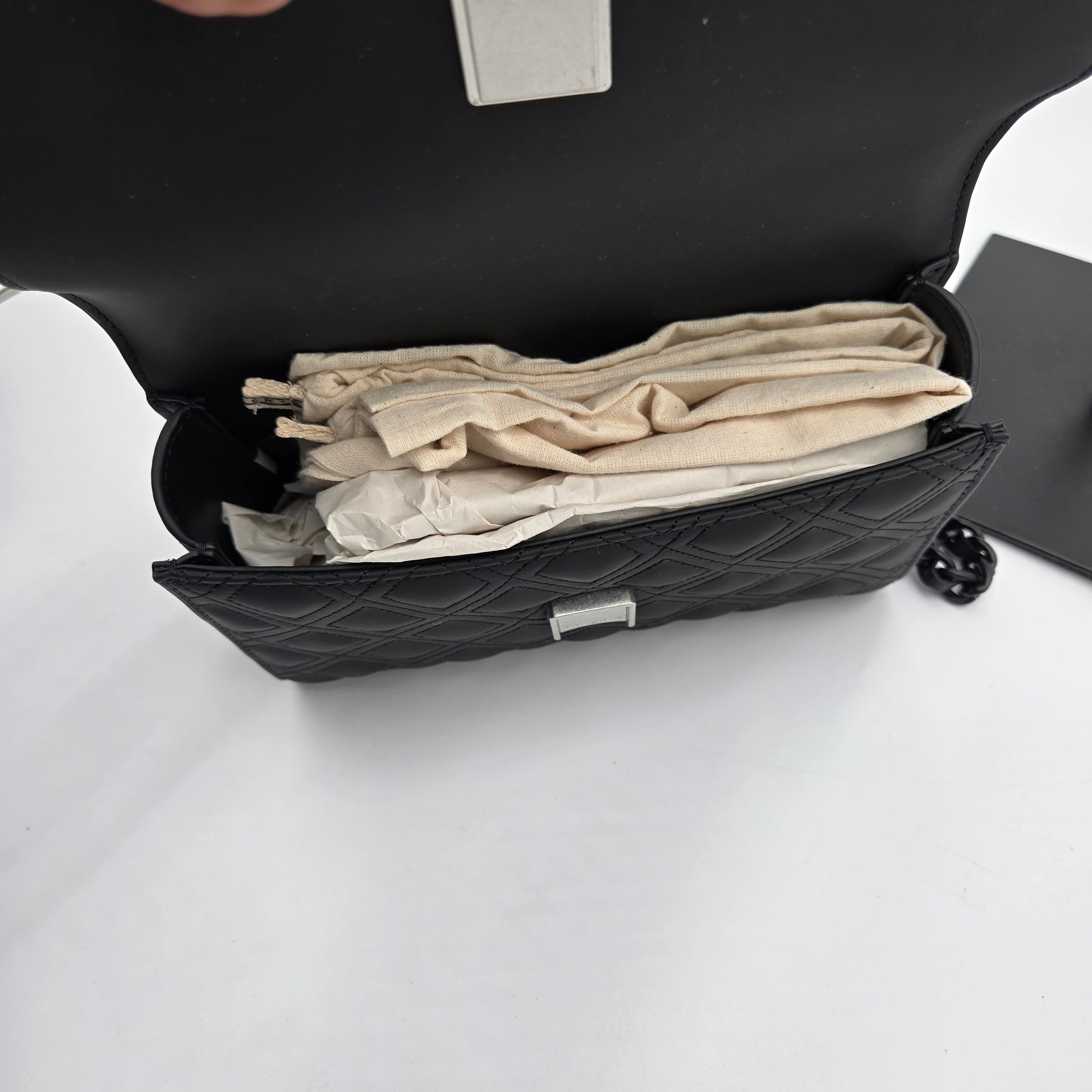 - Strap: The chain strap is braided with leather and has a shoulder guard for comfort. It is convertible, allowing it to be worn as a shoulder bag or a crossbody bag.